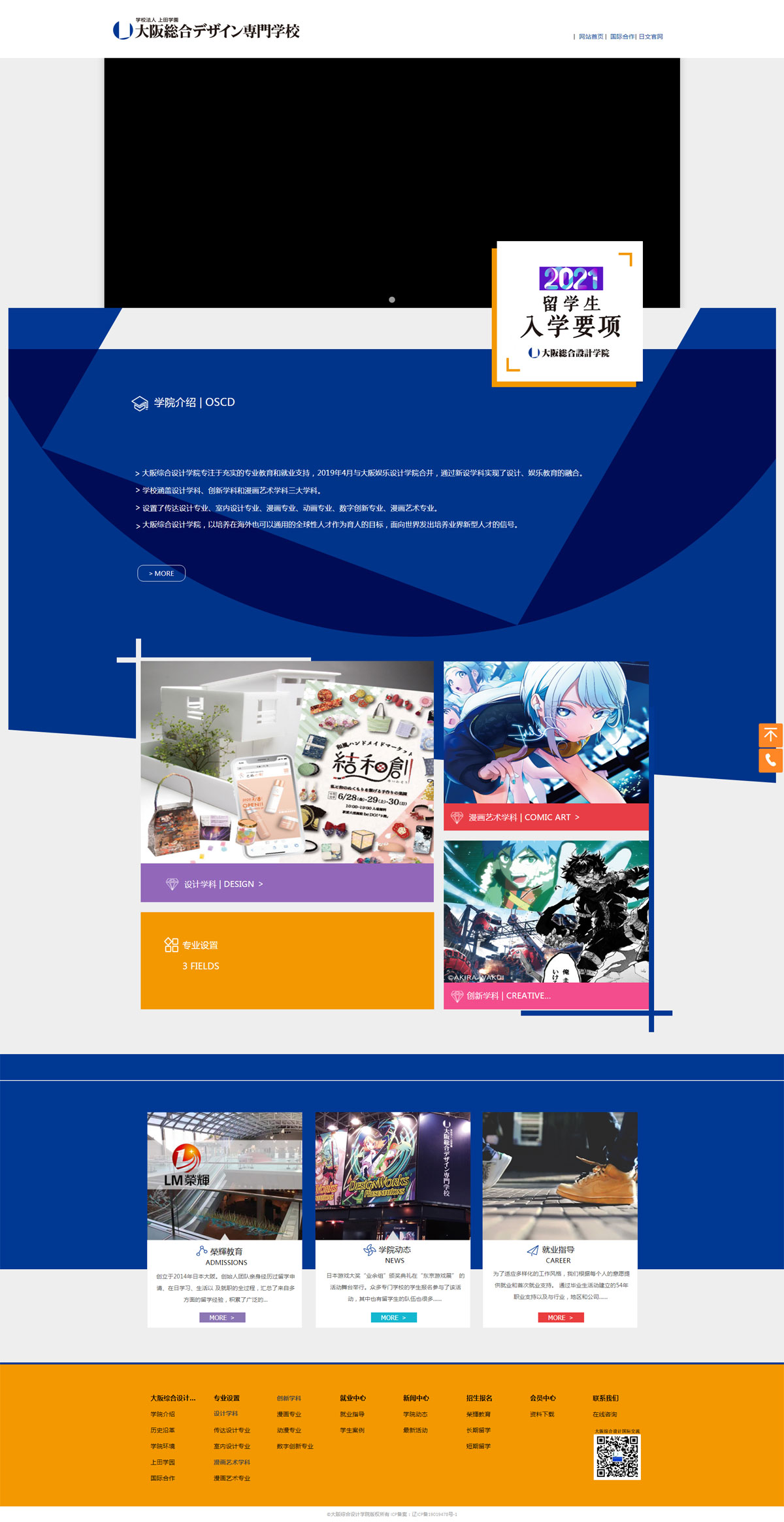 學(xué)院專注于堅實的專業(yè)教育和就業(yè)支持,2019年與大阪娛樂設(shè)計學(xué)院合并,通過新設(shè)學(xué)科實現(xiàn)了設(shè)計、娛樂教育的融合。并從2020年起將緊隨時代潮流和創(chuàng)新要求,整合創(chuàng)建全新的教育踐習(xí)體系。學(xué)院目前設(shè)有:設(shè)計、創(chuàng)新和漫畫藝術(shù)三大學(xué)科;分設(shè):傳達設(shè)計、室內(nèi)設(shè)計、漫畫、藝術(shù)插畫、手辦模型制作、動漫、游戲和漫畫藝術(shù)等8門專業(yè),可謂囊括時下熱門且頗具就業(yè)競爭力和市場發(fā)展前景的文創(chuàng)設(shè)計領(lǐng)域的學(xué)科和專業(yè)。
