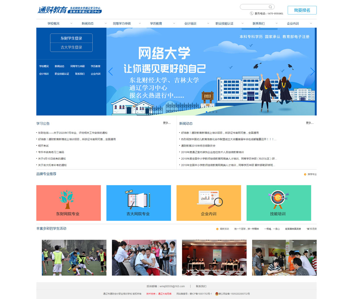 2013年、2014年相繼經東北財經大學、吉林大學、內蒙古教育廳審批成立東北財經大學網絡教育學院《通遼學習中心》、吉林大學網絡教育學院《通遼學習中心》。